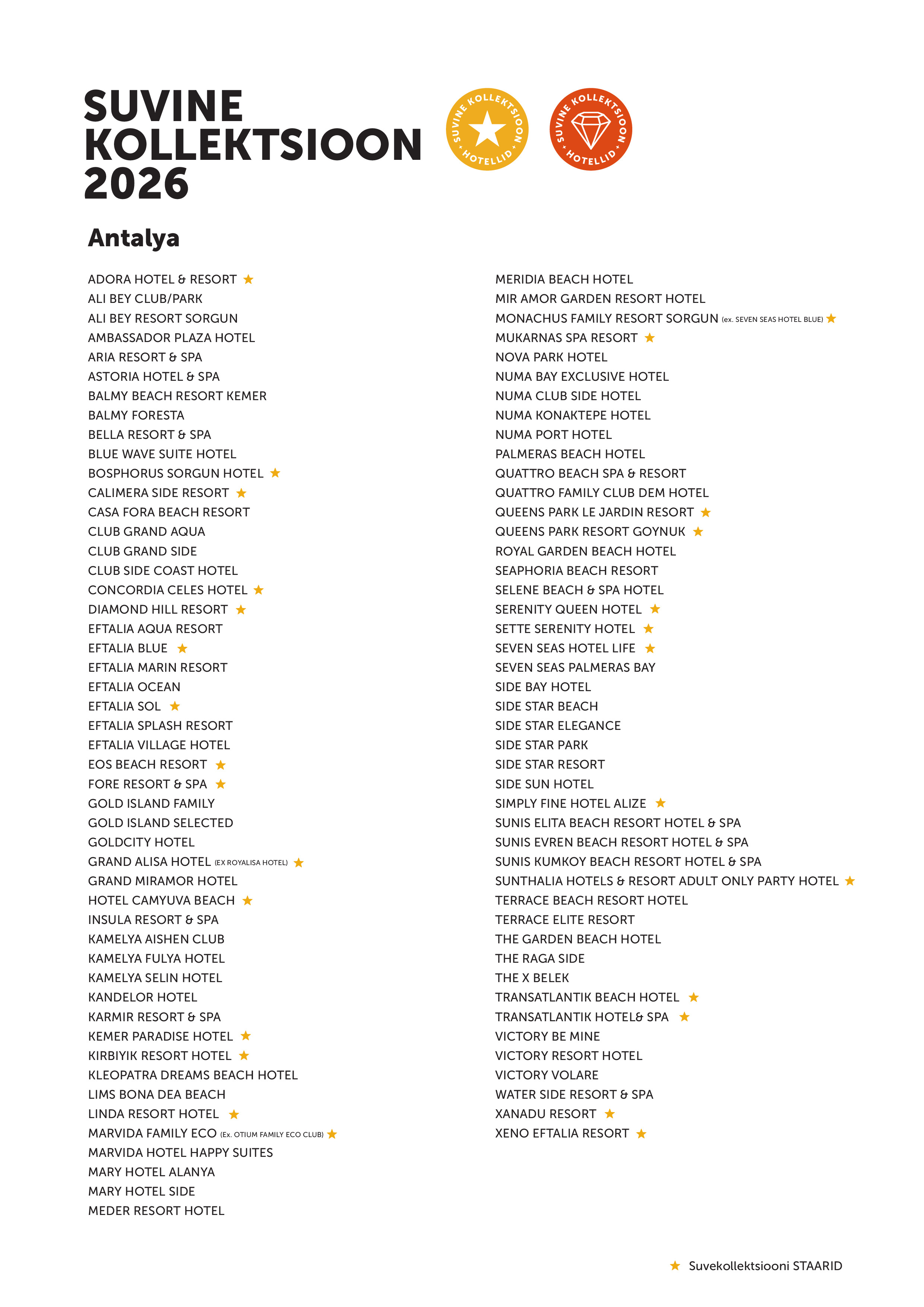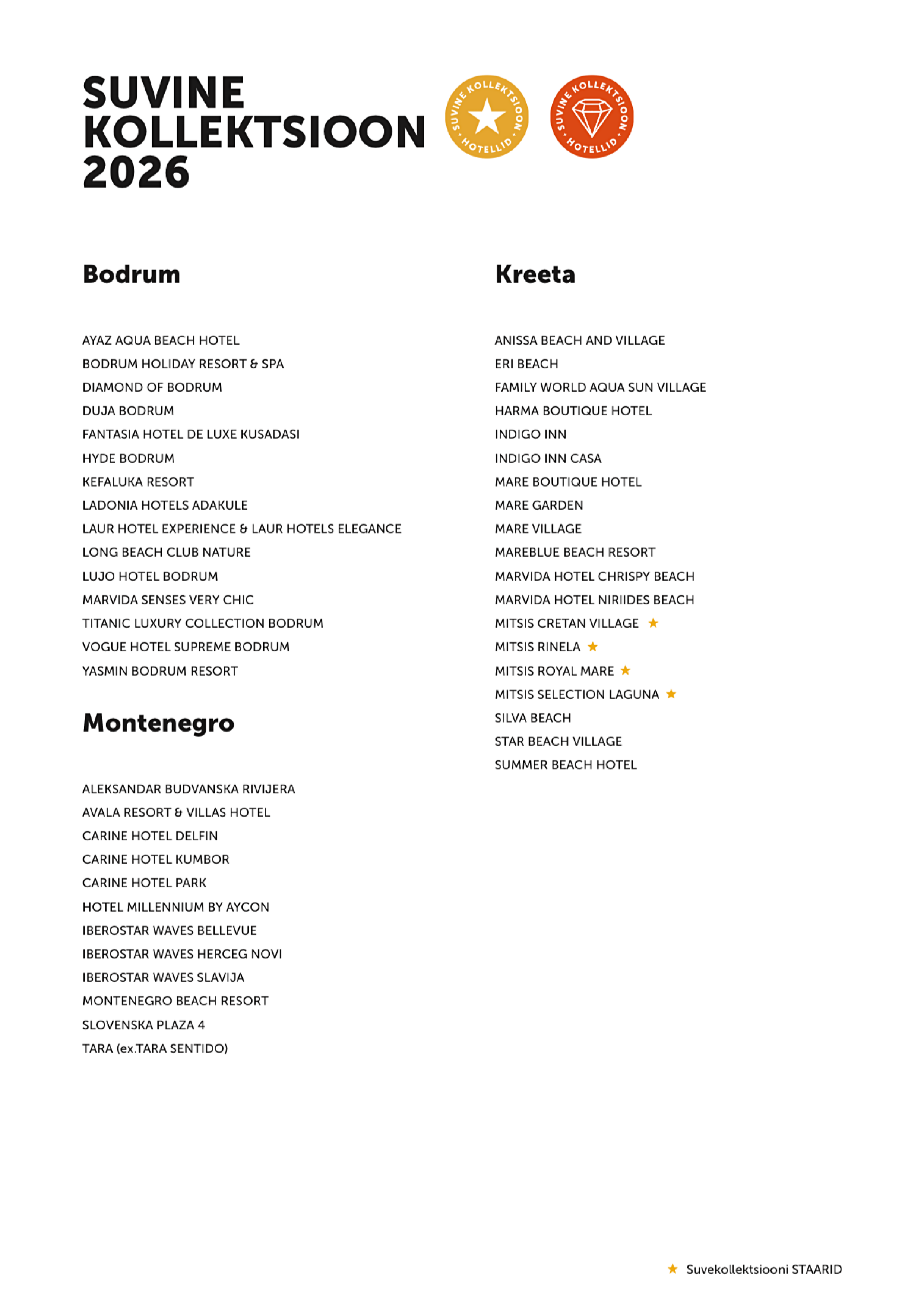 Условия кампании: Направления - Турция, Крит, Черногория Даты и продолжительность поездки: все даты и все продолжительности Скидка 70 € на все отели из летней коллекции 2026 Скидка 100 € на отели из летней коллекции 2026 Stars (отмеченные звездочкой в списке) Предложение не распространяется на одноместные номера Период бронирования: 03.09.2025 – 02.10.2025 (до 23:59) Цены могут изменяться в зависимости от наличия Предложение не распространяется на бронирование только авиабилетов, проживания или дополнительных услуг Скидка может быть объединена со специальными предложениями для медовых месяцев, пожилых людей и небольших групп